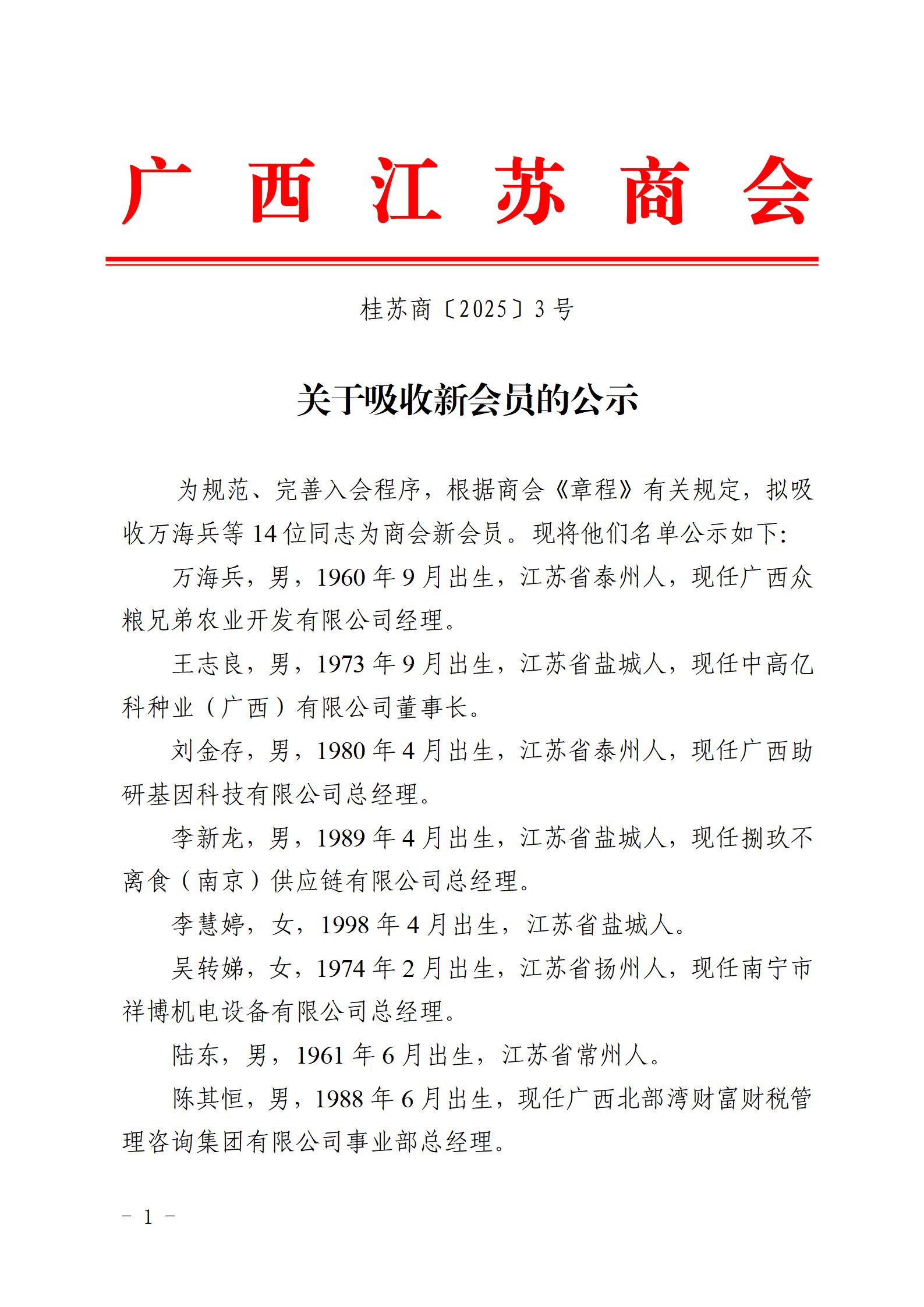 桂苏商〔2025〕3号 关于吸收新会员的公示