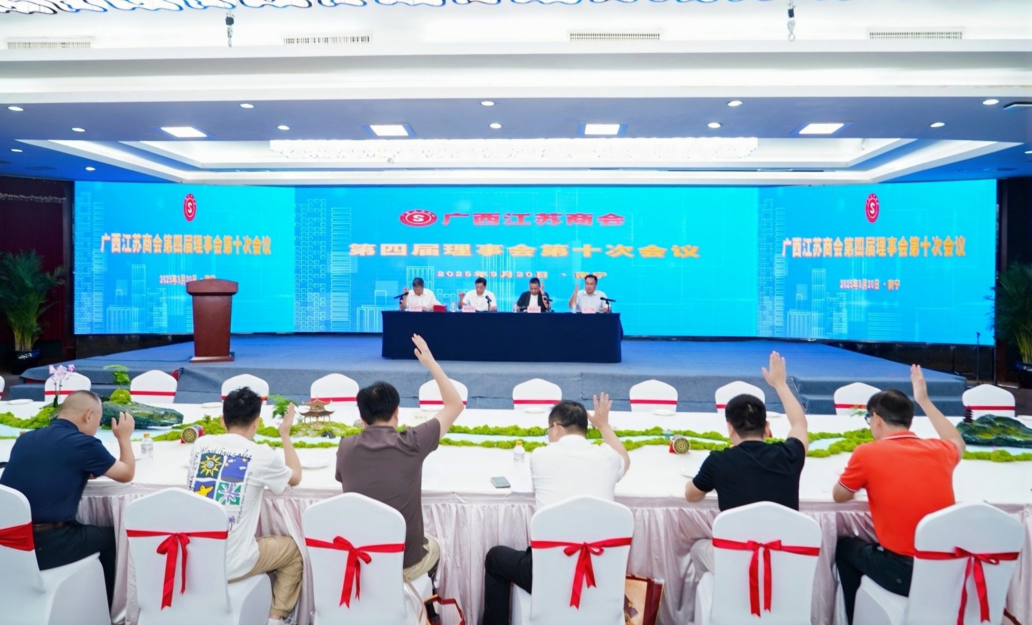 2025年9月20日,广西江苏商会在南宁召开第四届理事会第十次会议、第四届监事会第十次会议、第四届会员大会第七次会议。本次会议围绕多项重要议程展开深入讨论研究,为商会下一阶段发展指明方向。商会会长施瑞明,执行会长杨景忠,秘书长朱建平,党委书记、常务副会长王伟和常务副会长、副会长、理事、监事、会员等出席会议。