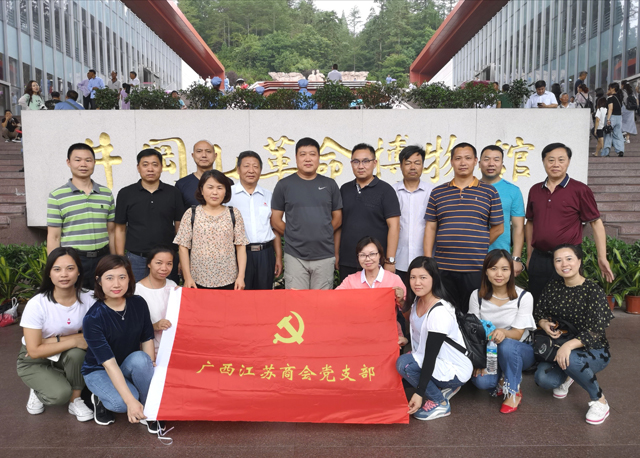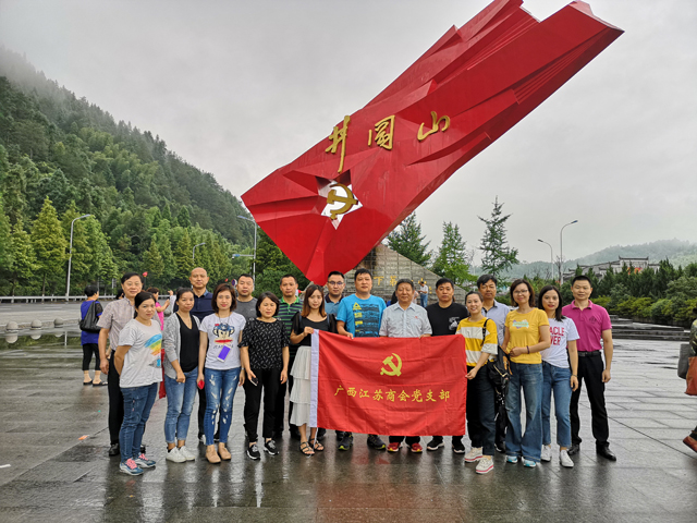 在“红色记忆之旅”主题活动中,广西江苏商会联合党支部的同志在象征井冈山精神,永不褪色的旗帜面前合影留恋,并参观了井冈山革命博物馆、井冈山革命烈士陵园。